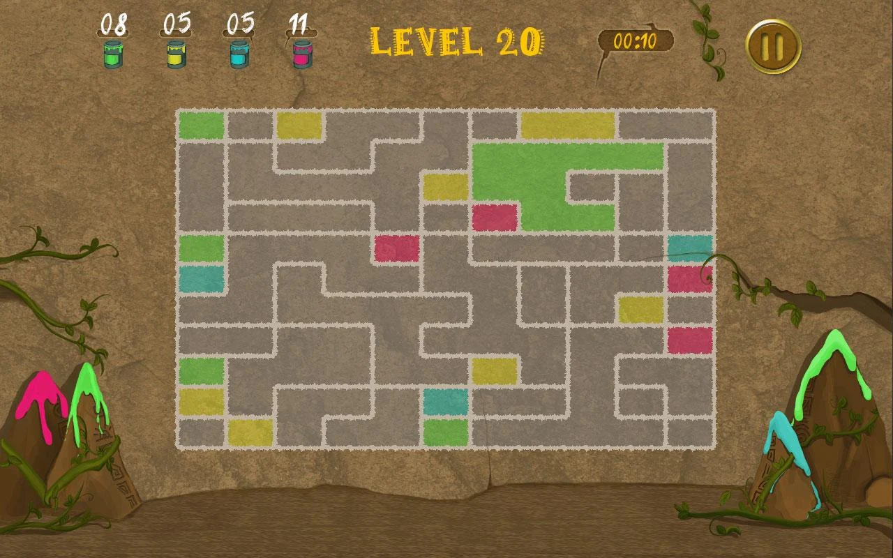 It is a quick-to-learn puzzle game. Using simple controls (just tapping) player should paint all the blocks on the level with 4 colors (each color is given in particular amount, sometimes even not given at all making it only 3 colors). The only rules are - neighbour blocks should be painted in different colors and you cannot change the block that has been already painted.