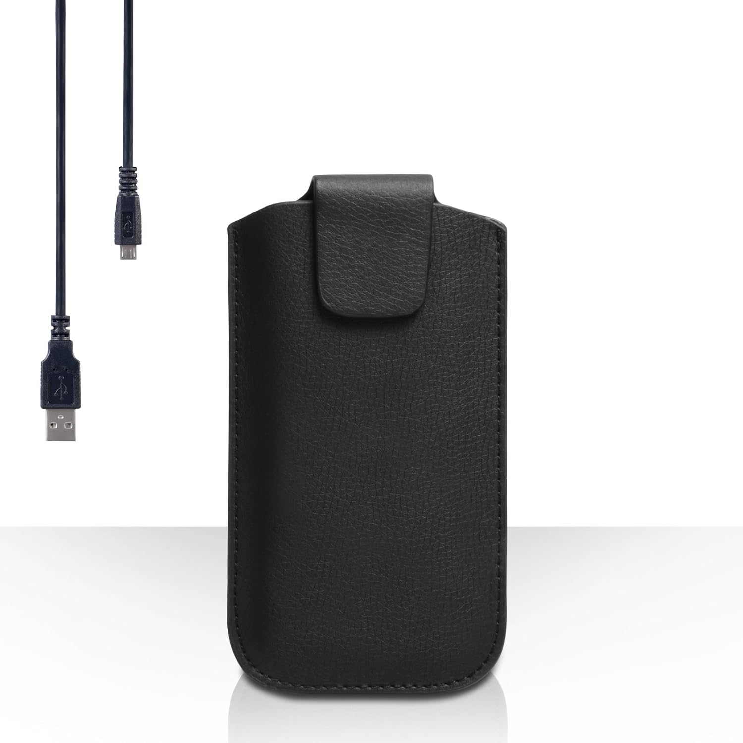 Yousave Accessories Sony Xperia M2 Case Black Lichee Leather Pouch Cover And Micro USB Cable
